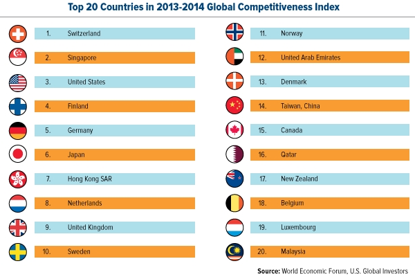 2013-2014全球竞争力指数排名。来源:世界经济论坛